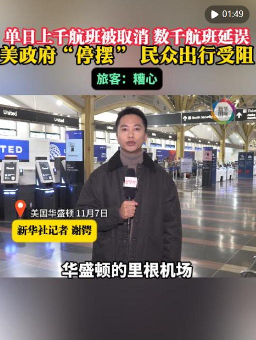 美国联邦政府“关门”7日进入第38天。当天,美国境内数千个航班被取消。交通部长达菲表示,政府可能会如果“停摆”继续下去,必须要求航空公司减少最多20%的航班。